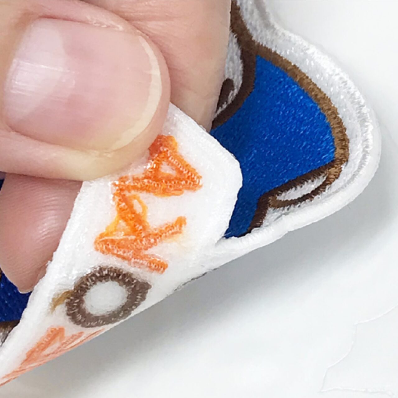 ワッペンのふちを 熱で焼き切って仕上げる加工方法 です。細かい形や曲線にも対応でき、すっきりとした見た目に仕上がるのが特徴。糸で縁を巻かないため、軽くてフラットな印象 になります。