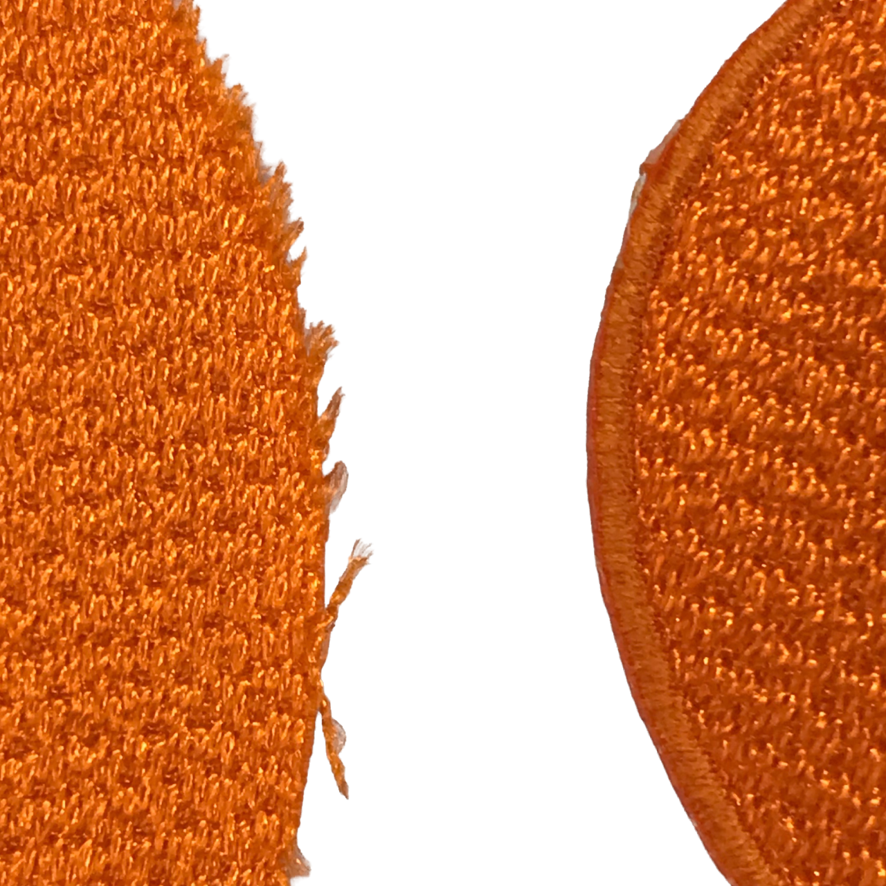 ヒートカット加工では、ワッペンの外周にある「サテン縫い」を目安に高温で生地を焼き切ります。