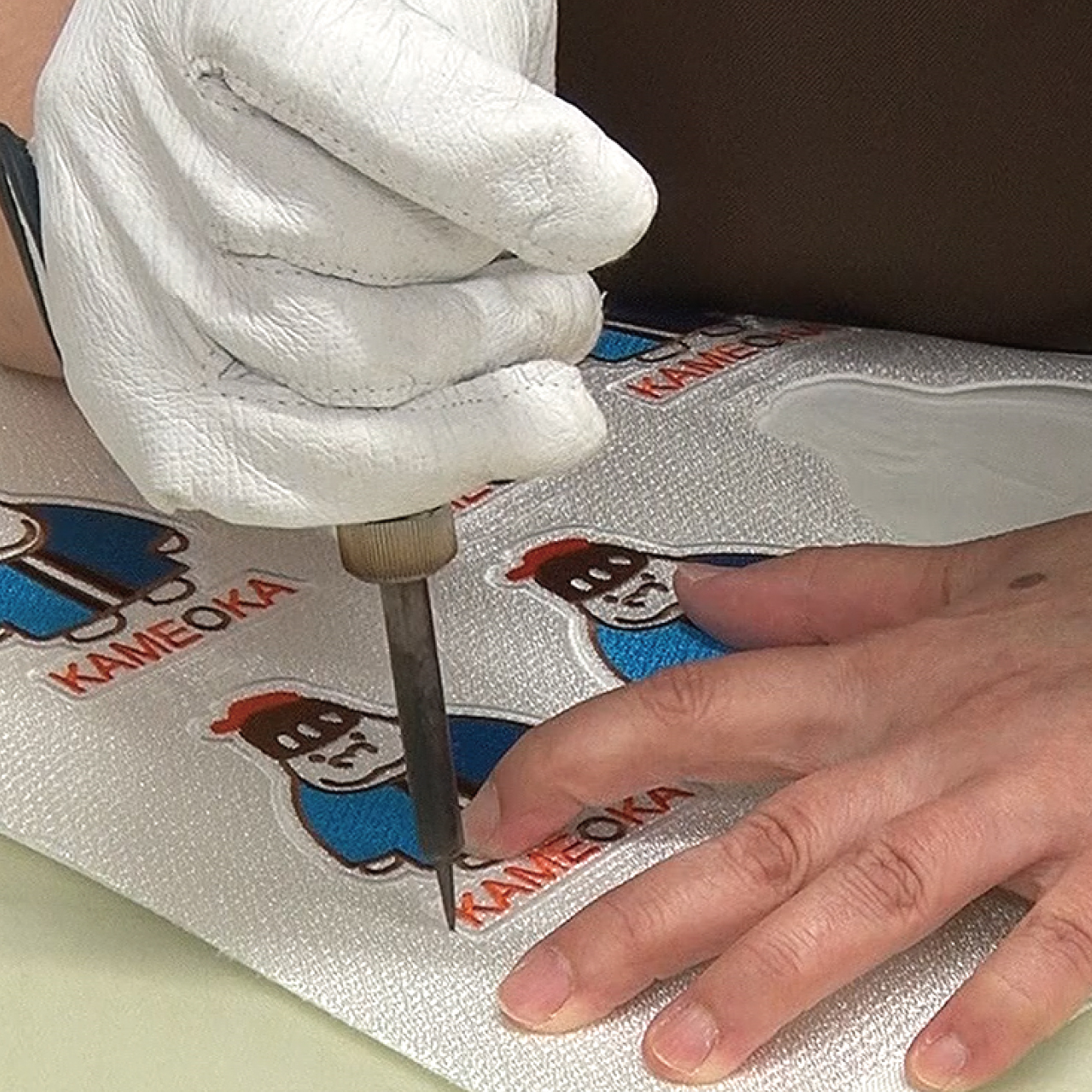 熟練のスタッフが素材ごとに最適な温度とカットスピードを調整。焦げや歪みのないシャープなカットラインを実現しています。見た目の美しさだけでなく、耐久性にもこだわっています。