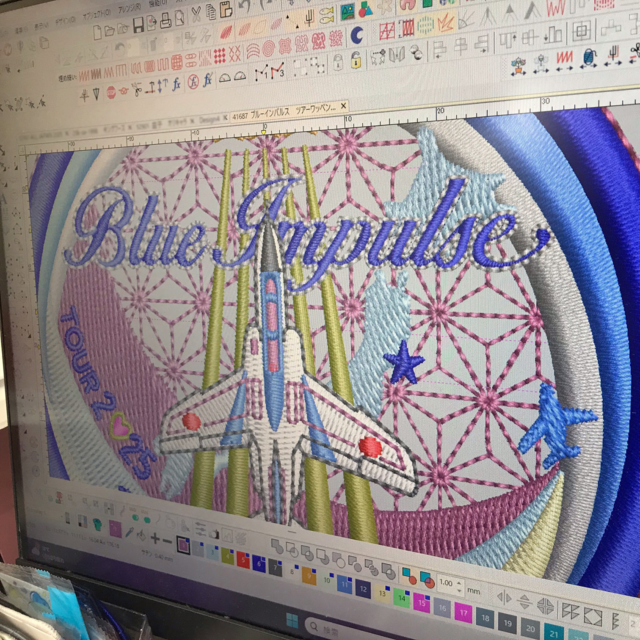 完成までに何度も試し縫いと修正を繰り返し、線の太さ・角度・密度を調整。美しさと耐久性を両立する刺繍データをつくり込んでいます。