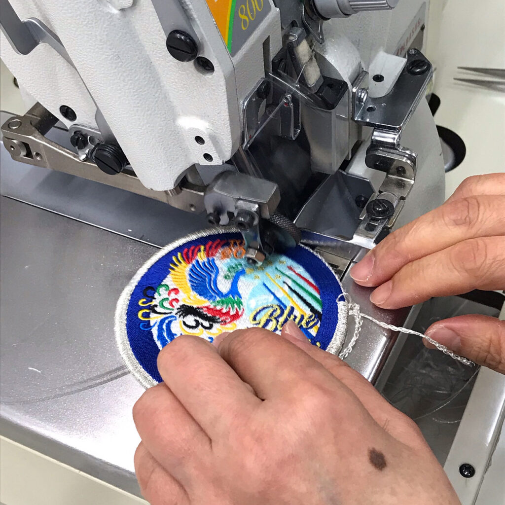 刺繍データの設計から試し縫いまでを自社で行い、細部まで忠実に再現。ロゴや紋章など、わずかな歪みも許されないデザインに対応しています。