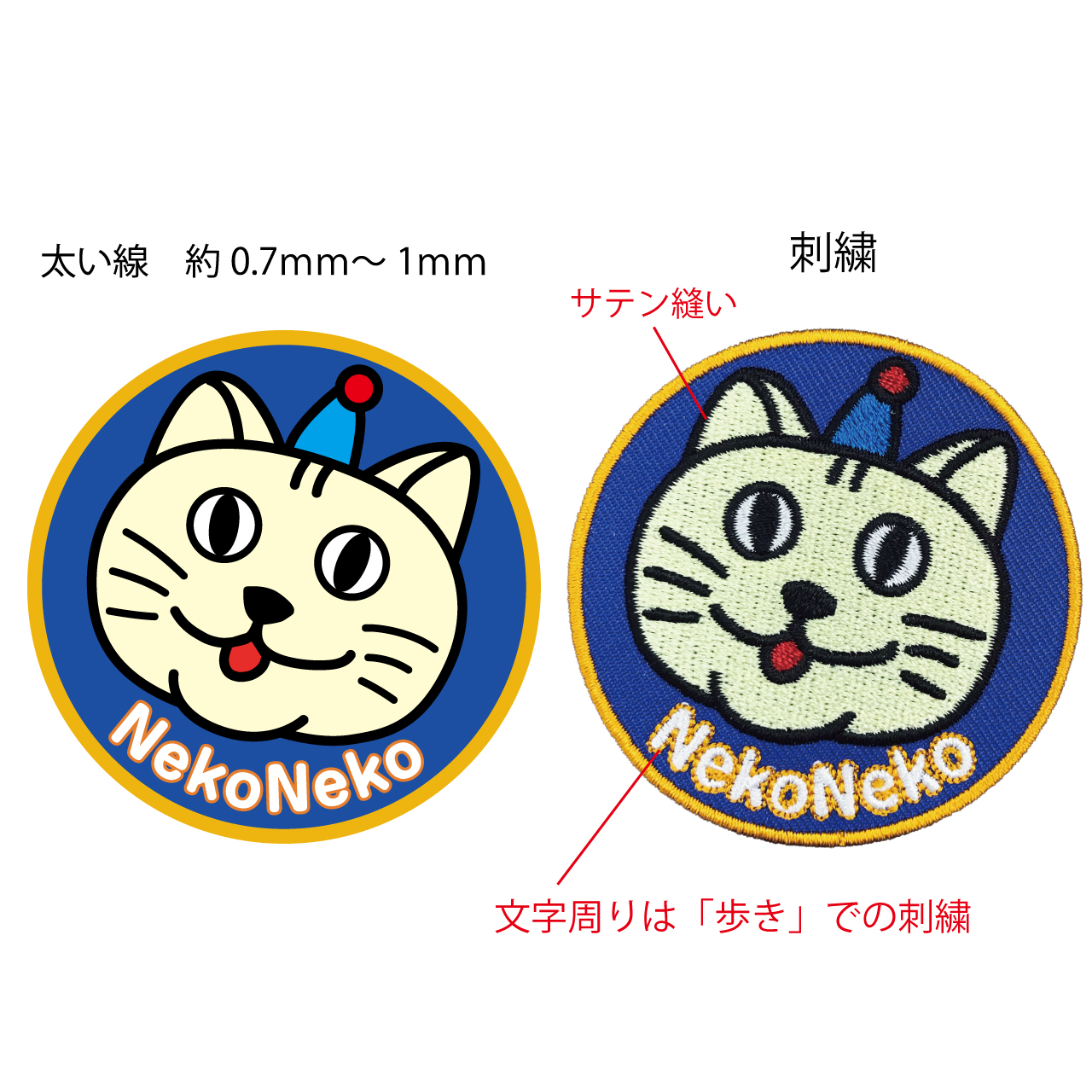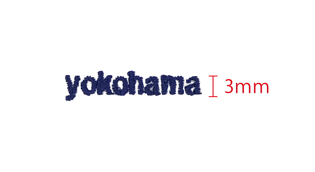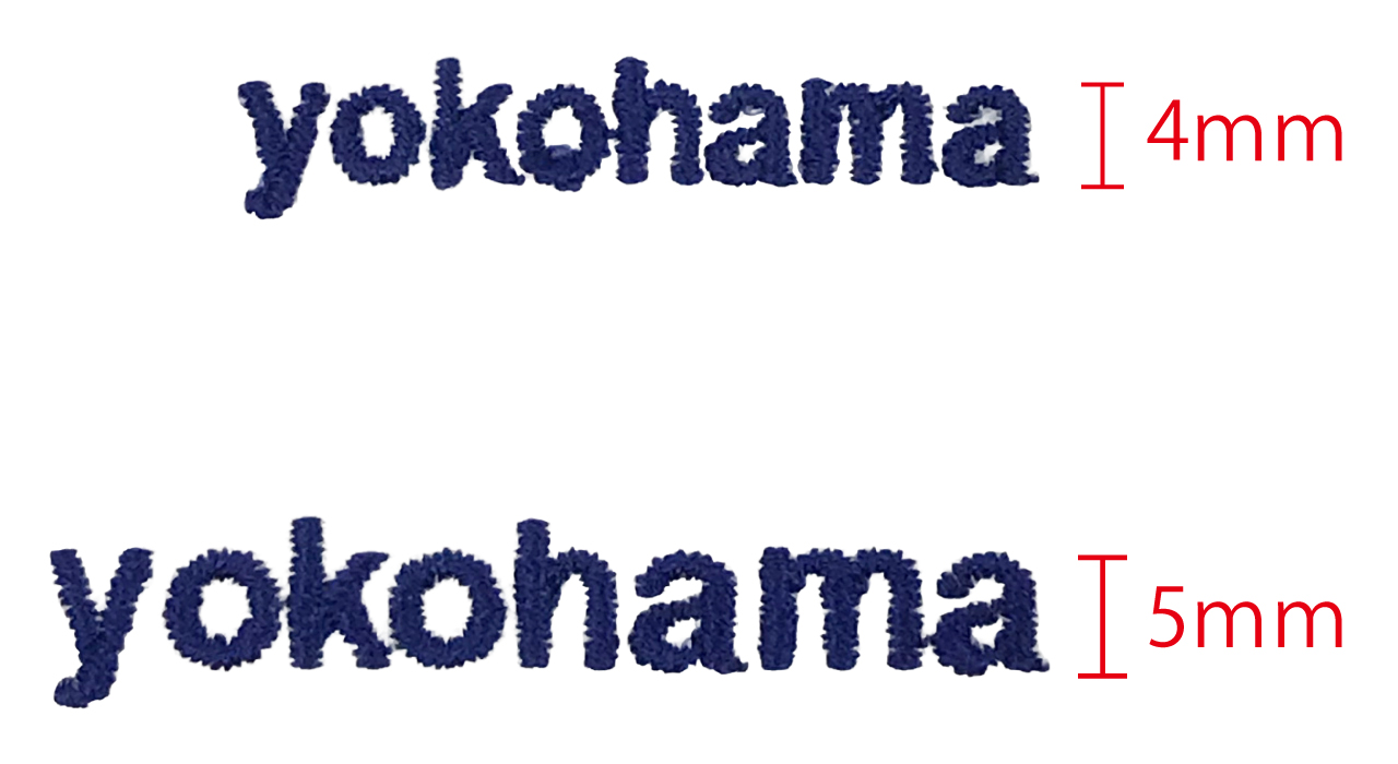 刺繍は糸の厚みがあるため、極端に小さな文字は潰れて見えにくくなることがあります。書体もよりますが、目安として、高さ3〜4mm以上であれば再現性が高く、くっきりとした仕上がりになります。