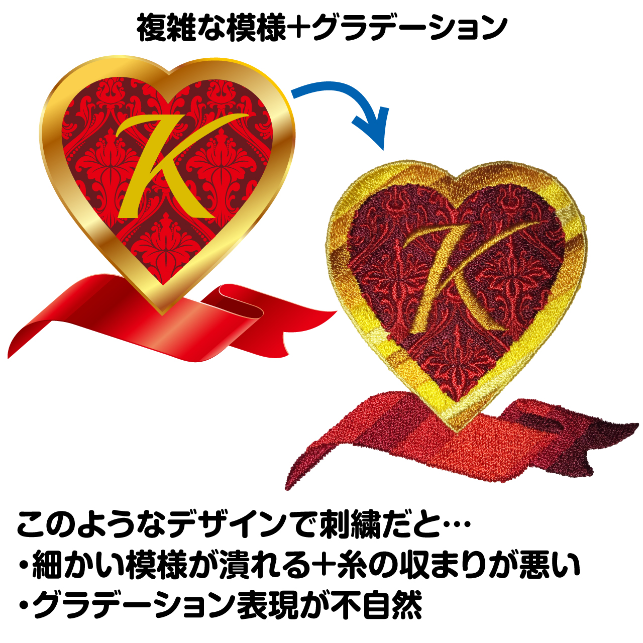 - 写真や細かいグラデーションのような表現は刺繍では再現が出来ません。