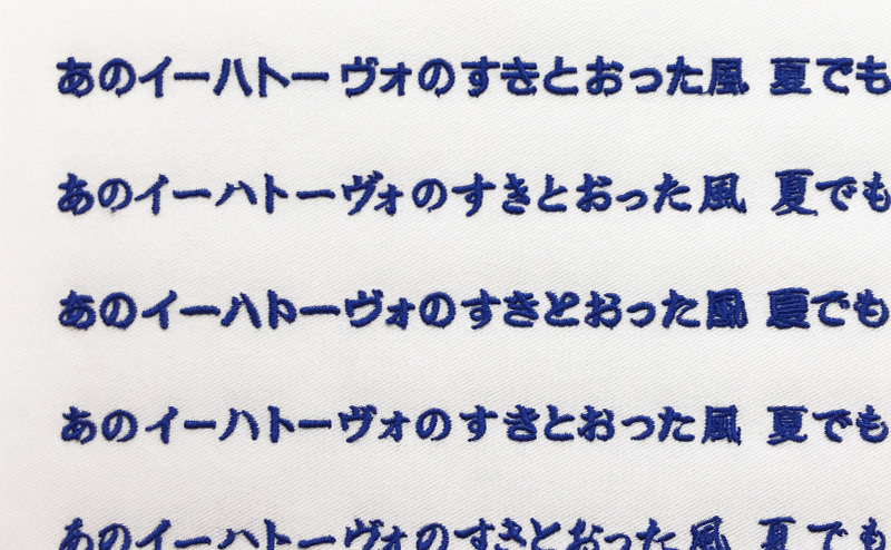 極小文字や個人名刺繍など、刺繍で表現しにくい場面でも、専用の書体を使うことで美しく見やすい仕上がりを実現します。