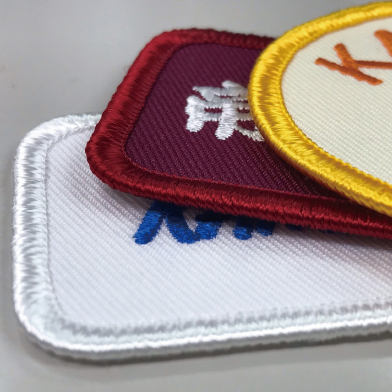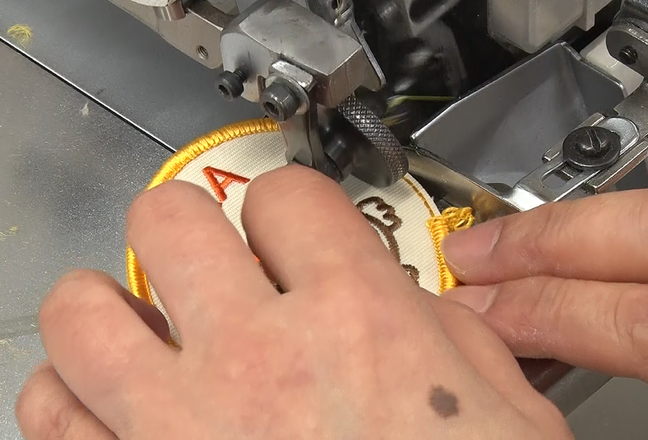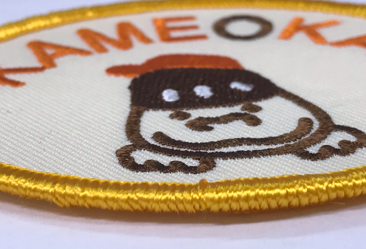 ワッペンの縁取り方法のひとつが「ロック加工」です。側面を糸でしっかり包み込むため、厚みがあり存在感のある仕上がりになります。一般的に知られている方法ですが、専用設備を自社で保有し対応できる会社は限られており、カメオカの強みのひとつです。