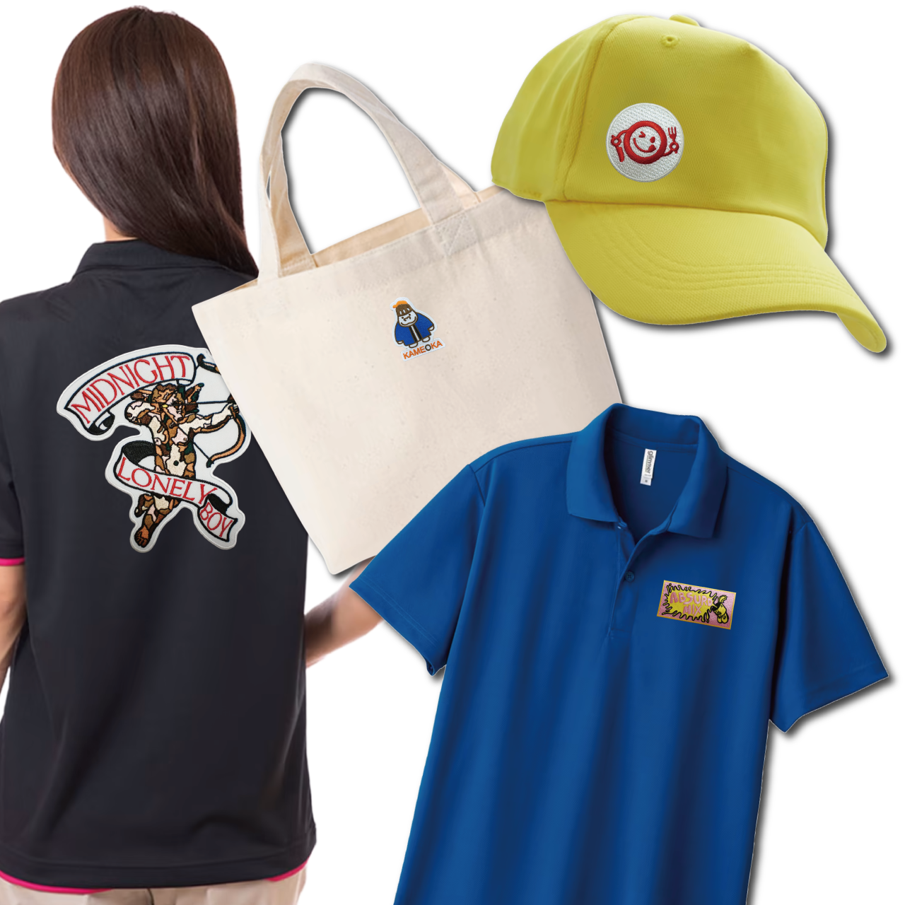 カメオカでは、刺繍・転写プリント・昇華転写など、表現したい世界観や素材の特性に合わせて最適な仕様を制作。