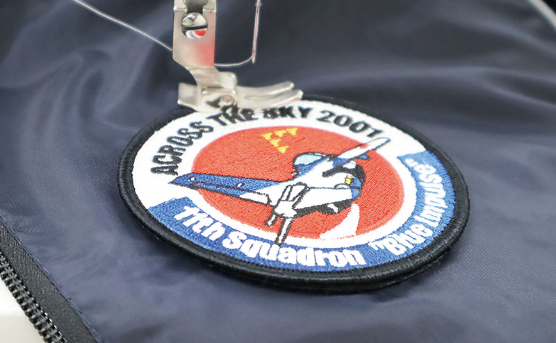 お手持ちの衣類へのワッペン取り付けも承っています。生地や位置に合わせて最適な方法で縫い付け加工を行います。