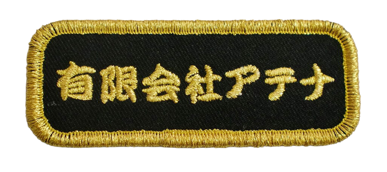 「有限会社アテナ」オリジナルワッペン制作事例 2025 11/27 業務・ユニフォーム向け 社名ワッペン 2025年10月30日2025年11月27日 業務・ユニフォーム向け 社名ワッペン オリジナルネームワッペン 横:83㎜×縦:32㎜ 前の事例 「(有)宮内電業社」オリジナルワッペン制作事例 次の事例 「大国美術」オリジナルワッペン制作事例 制作事例一覧に戻る